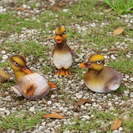 Diese süßen Enten im 3er Set sind aus Polyresin hergestellt. Die drei unterschiedlich positionierten Entenfiguren überzeugen durch ihre realistische Optik, feine Struktur und warmen Farbtöne. Perfekt geeignet für den Innen- und Außenbereich.