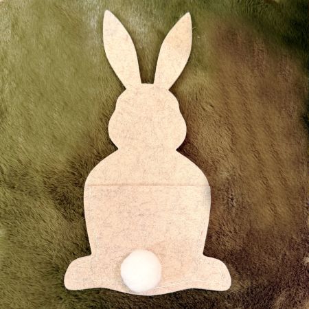 Dieser Besteckhalter in Hasenform sorgt für eine stilvolle und gemütliche Tischdekoration. Gerfertigt aus Filz in einem natürlichen hellbraun, hälst der Hase Messer und Gabel ordentlich zusammen und setzt zu Ostern oder im Frühling einen dekorativen Akzent auf Ihren Esstisch. Der Besteckhalter/Bestecktasche eignet sich ideal zur Osterzeit. Ein dekoratives Highlight für jeden gedeckten Tisch und eine schöne Geschenkidee für Osterliebhaber.