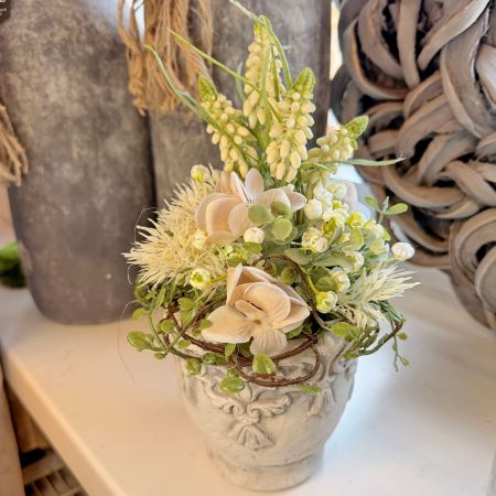 Dieses künstliche Blumengesteck wurde liebevoll von unserer Floristin gefertigt. Arrangiert mit Muscari, Schleierkraut, Hortensien, Eukalyptus und Moos wird diesen Blumengesteck zum dekorativen Hingucker. Die Farben sind alle harmonisch aufeinander abgestimmt. Gefertigt aus hochwertigen, langlebigen Materialien ist dieses Blumengesteck pflegeleicht, allergikerfreundlich und jahrelang wiederverwendbar.