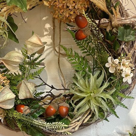 Dieser Rattankranz vereint sorgfältig arrangierte künstliche Tannenzweige, glitzernde Beeren, Holzsterne, Zapfen und einen süßen Engel in der Mitte. Ein harmonischer Winter-Blickfang. Von unserer Floristin liebevoll als Einzelanfertigung geschaffen, passt er perfekt zur kalten Jahreszeit und verleiht der Eingangstür oder der Wand eine warme, einladende Note. Pflegeleicht, langlebig und vielseitig einsetzbar – ideal als stilvoller Dekokranz für die Winterzeit.