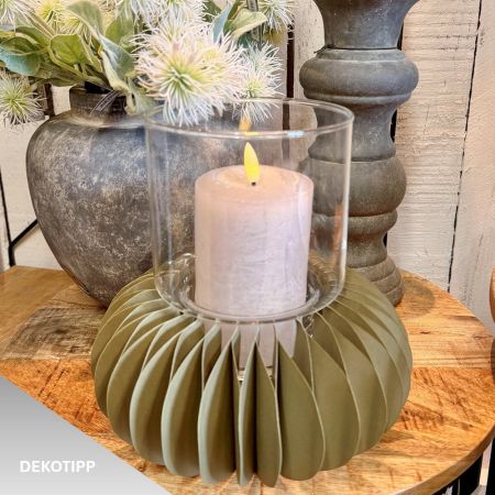 Die Glasvase als stilvolle Ergänzung für unsere Papiersockel (Artikel-Nr. 00399+00494). Vielseitig einsetzbar lässt die Glasvase sch ganz nach Ihrem Geschmack dekorieren. Ob mit einer Stumpenkerze (bis zu ca. 8 cm Ø) oder mit frischen dekorativen Blumen. Gefertigt aus hochwertigem Glas überzeugt die Vase durch ihre klare, elegante Optik und setzt jedes Arrangement in Szene.