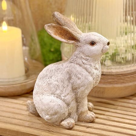 Dieser liebevoll gestaltete, sitzende Hase ist eine charmante Dekoration für Ihr Zuhause. Gefertigt aus hochwertigen Polyresin überzeugt diese Hasenfigur durch ihre detailreiche Verarbeitung. Die dezente Farbgebung mit leichten Schattierungen verleiht dem Hasen eine elegante und zugleich warme Ausstrahlung. Ob als frühlingshafte Osterdekoration, auf der Fensterbank, im Regal oder als Blickfang auf dem Tisch - dieser Dekohase fügt sich harmonisch in viele Einrichtungsstile ein, von modern bis rustikal.