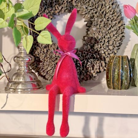 Dieser Kantenhocker Hase in der Farbe pink bringt fröhliche Osterstimmung in Ihr Zuhause. Mit seinen langen Beinen sitzt der dekorativ auf Regalen, Fensterbänken, Kommoden oder Kaminen und ist ein absoluter Hingucker zur Osterzeit. Der Hase besteht aus Polyethylen und überzeugt durch seine samtige Optik sowie seiner strahlenden Farbe. Ob einzeln und in Kombination mit weiteren Kantenhockern sorgt dieser Dekohase für eine verspielte Atmosphäre im Frühling.