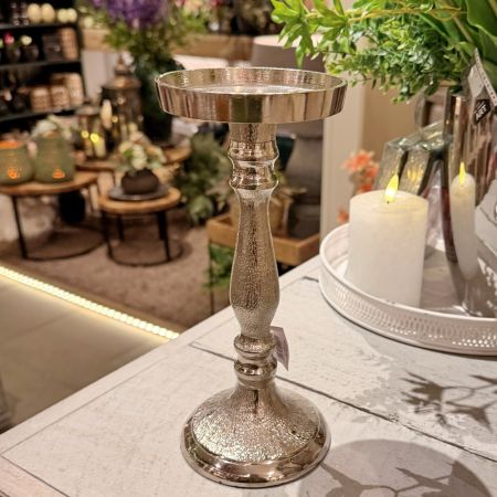 Dieses Schmuckstück ist ein massiver aus Aluminium hergestellter Kerzenhalter GROS in der Farbe silber. Mit diesem Schmuckstück zaubern Sie ein ganz besonderes Ambiente in Ihren Wohnzimmer- oder Essbereich. Sie können den Kerzenständer entweder für Stabkerzen nutzen oder für Stumpenkerzen. Stabkerzen Ø bis 2 cm / Stumpenkerzen Ø bis 10 cm.