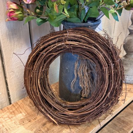 Ein stilvoller Kranz aus Rattan – handgefertigt und einzigartig. Dieser Rattankranz überzeugt als eigenständiger Blickfang im Wohnraum oder in geschützten Außenbereichen. Er dient auch ideal als Unterbau für Türkränze und Weiterverarbeitung. In der Mitte lässt sich ein Glasgefäß für Kerzen oder Blumendekoration einsetzen. Jedes Stück ist handgearbeitet und somit ein Unikat.
