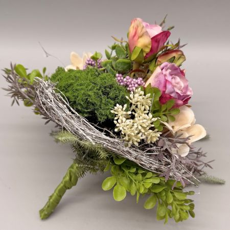 Dieser künstliche Strauß wurde liebevoll von unserer Floristin gebunden. Arrangiert mit einer Rosen, Hortensien, Moos, sowie weiteren Zweigen und Blättern bringt dieser Strauß frühlingshaftes Flair in Ihren Wohnraum. Die Farben sind alle harmonisch aufeinander abgestimmt. Gefertigt aus hochwertigen, langlebigen Materialien ist dieser Frühlingsstrauß pflegeleicht, allergikerfreundlich und jahrelang wiederverwendbar. Ideal für Ihre Vasen. Die Lieferung enthalt nur den Strauß und keine Vase wie auf dem Fotobeispiel abgebildet.