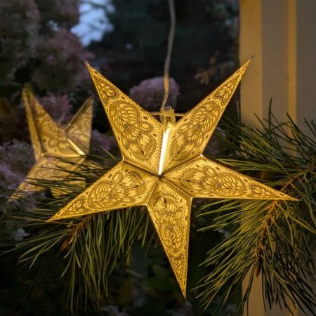 Der Mini Stern Ganesha in einem edlem weiß ist ein stilvoller Papierstern mit aufwendigem Siebdruck, der Ihrer Dekoration das gewisse Etwas verleiht. Perfekt für Fenster, Regale, Wände oder als zartes Highlight in Kombination mit größeren Sternen. Der Stern wird aus hochwertigem Papier gefertigt und mit einem filigranen Muster im Siebdruck-Verfahren versehen – für ein besonders edles und kunstvolles Design. Der integrierte Kordel-Schnellverschluss ermöglicht ein einfaches Auf- und Abbauen. Der Stern lässt sich mit einem passenden LED-Leuchtmittel (separat erhältlich unter Artikel-Nr. 51648) stimmungsvoll beleuchten. Eine schöne Dekoration zur Advents- und Weihnachtszeit.