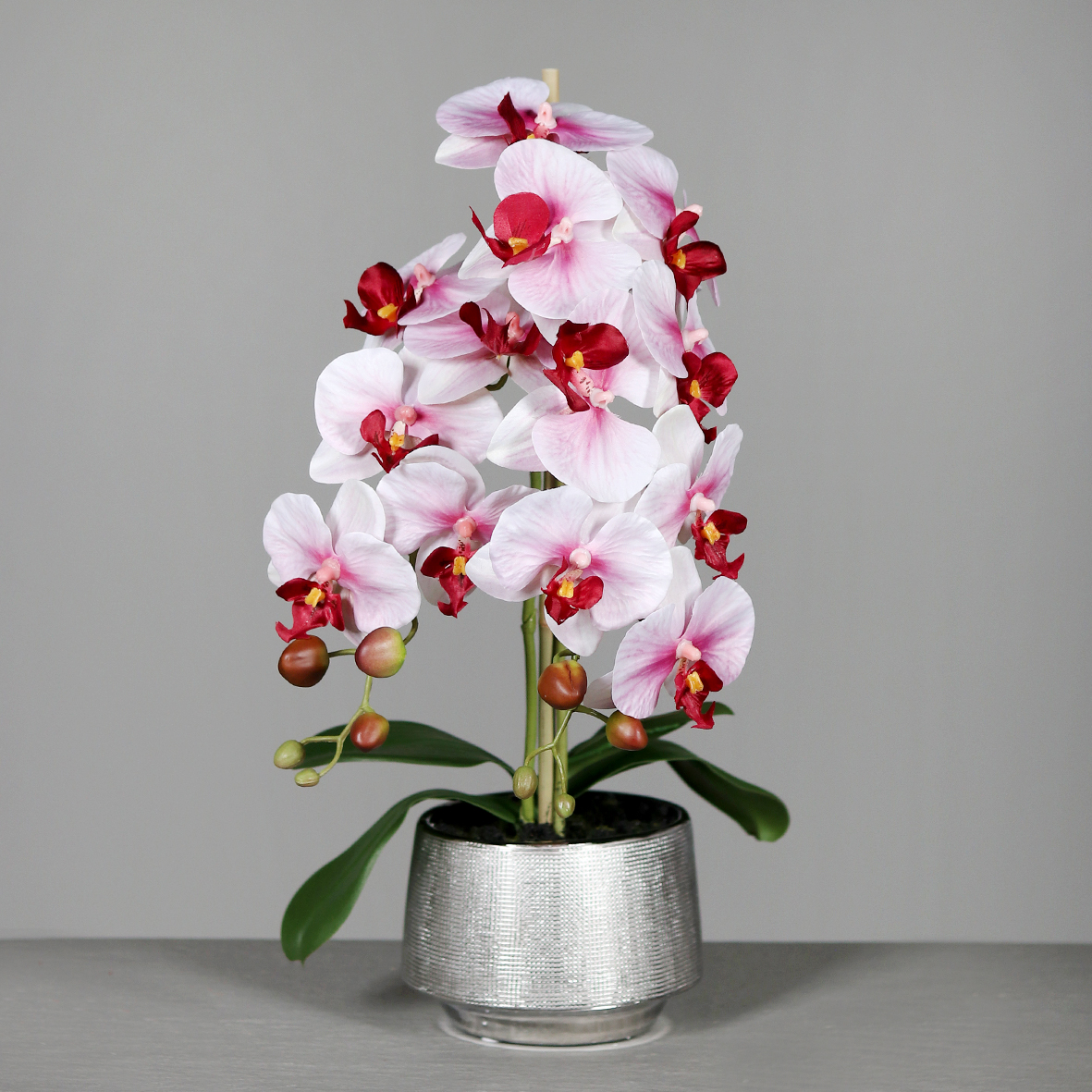 Orchidee weiß-rosa im Keramiktopf silber