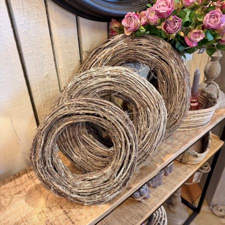 Dieser Naturkranz aus Rattan ist vielseitig einsetzbar und eignet sich hervorragend zur weiteren Verarbeitung für Tür- oder Tischkränze. Schlicht und elegant, zaubert er zu jeder Jahreszeit einen besonderen Akzent. Jeder Kranz wurde in Handarbeit hergestellt und ist somit ein Unikat.