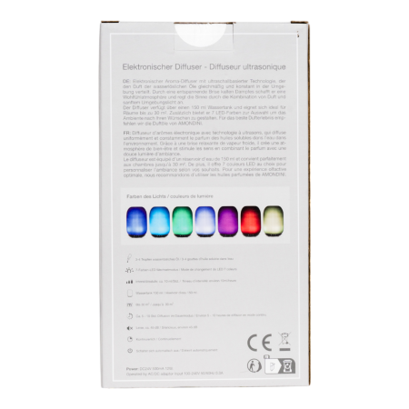 Dank moderner Ultraschalltechnologie vernebelt er wasserlösliche Duftöle sanft und gleichmäßig im Raum. Genießen Sie den feinen, kühlen Dampf, der sofort für eine beruhigende Atmosphäre sorgt. Mit einem großzügigen 150 ml Tank ist der Diffuser ideal für Räume bis zu 30 m² geeignet. Wählen Sie aus 7 stimmungsvollen LED-Farben und schaffen Sie Ihr ganz persönliches Ambiente – ob entspannend, inspirierend oder harmonisierend. Für ein rundum perfektes Dufterlebnis empfehlen wir die exklusiven AMONDINI Duftöle – sorgfältig komponiert für maximale Wirkung. Hier im Shop erhältlich.