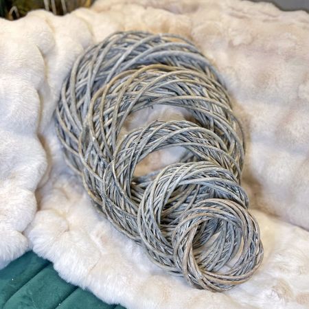 Ein sehr schöner grauer Weidenkranz. Der Kranz kann ideal als Unterbau für Gestecke oder auch zum weiterverarbeiten für Türkränze genutzt werden. In der Mitte des Weidenkranzes kann beispielsweise auch ein Glasgefäß eingesetzt werden, für Kerzen oder Blumendekorationen. Der Kranz kann auch schlicht ein toller Hingucker in Ihrem Wohnraum sein. Der Weidenkranz wurde in Handarbeit hergestellt. Somit stellt jeder Kranz ein Unikat dar. ca. 35 cm Ø