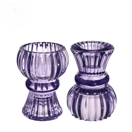 Dieser Kerzenhalter aus Glas lässt sich von 2 Seiten verwenden. Ein vielseitig einsetzbarer Kerzenhalter im geriffelten lila Look den Sie für Ihre Tischdekoration nutzen können. Der Duo Kerzenhalter mit seiner Riffelglasoptik ist ein eleganter und schicker Hingucker und durch seine Wendbarkeit ein richtig tolles Dekoaccessoire. Je nachdem wie Sie den Kerzenhalter einsetzen möchten können Sie entweder Stabkerzen mit einem Durchmesser von ca. 2,2 cm oder Teelichte von ca. 4 cm verwenden. Schaffen Sie sich mit unserem wendbaren Kerzenhalter und durch das Kerzenlicht eine entspannte Stimmung und eine romantische Atmosphäre in Ihren Wohnraum.