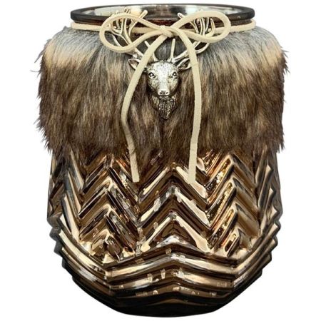 Dieses hübsche Glaswindlicht mit extravaganten Design erhält durch das Fell und Rentier verleiht ein absolut gemütliches weihnachtliches Design. Sie können das Windlicht mit einem Teelicht bestücken. Ein Glaswindlicht ist immer eine nette Dekoration auf Ihrem Esstisch, Regal oder Fensterbank.